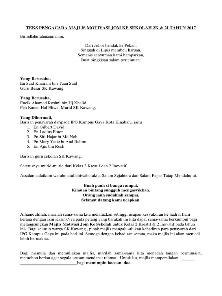 Teks Pengacara Program Motivasi Gegar Upsr Pdf